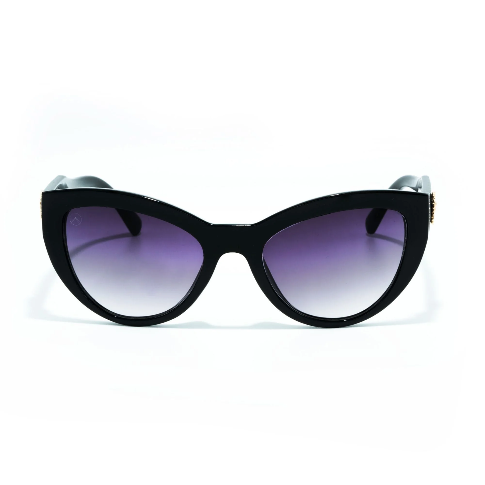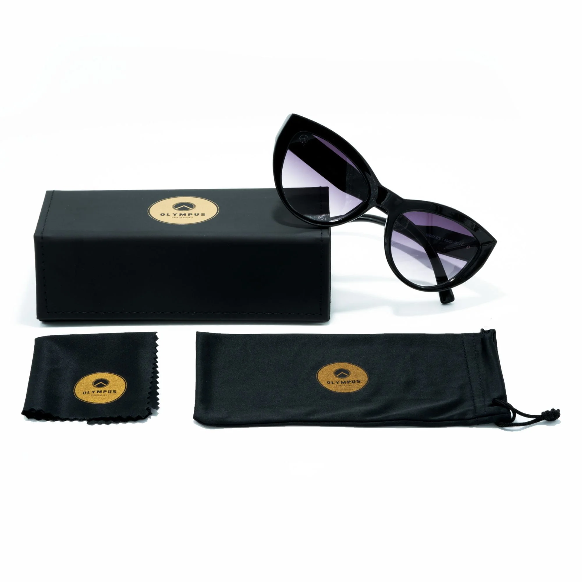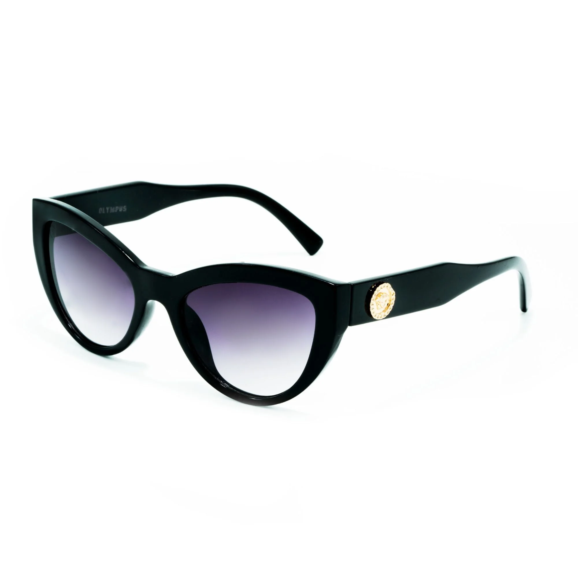 Γυναικεία γυαλιά ηλίου Olympus Medusa Cat Black με σκελετό cat eye από pvc σε μαύρο χρώμα, μεταλλικές λεπτομέρειες σε χρυσό χρώμα και ντεγκραντέ φακό σε μαύρο χρώμα. Ένα ιδιαίτερο γυαλί ηλίου που ταιριάζει σχεδόν σε όλα τα πρόσωπα ενώ παράλληλα προστατεύει από την υπεριώδη ακτινοβολία.