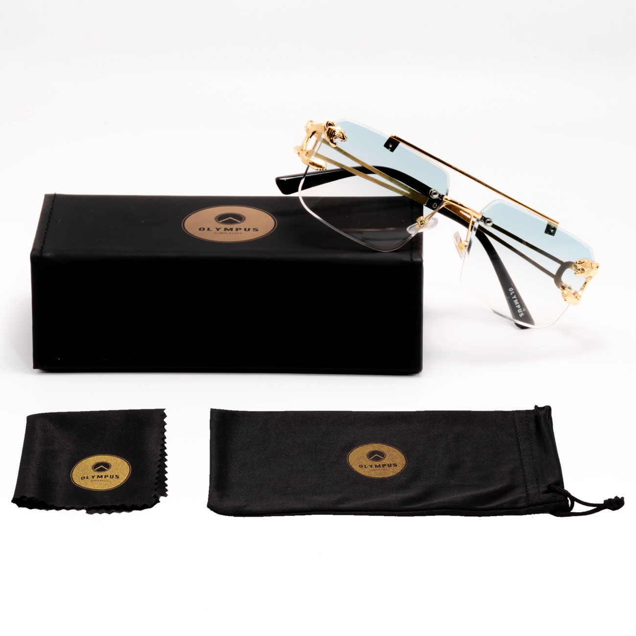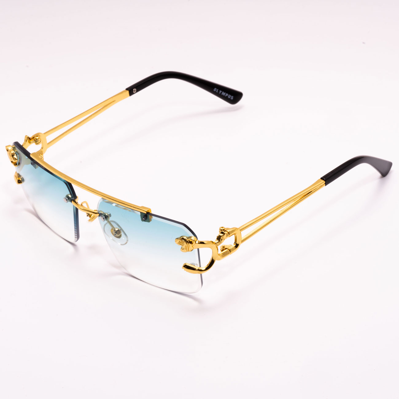 Unisex γυαλιά ηλίου Olympus Jaguar Gold Black με μεταλλικό σκελετό σε χρυσό χρώμα και τετράγωνο μαύρο φακό. Το ιδιαίτερο στοιχείο σε αυτά τα γυαλιά ηλίου είναι τα 2 μεταλλικά Jaguar σε χρυσό χρώμα που πλαισιώνουν τους φακούς κάνοντας το γυαλί μοναδικό. Ένα ιδιαίτερο γυαλί ηλίου που ταιριάζει σχεδόν σε όλα τα πρόσωπα ενώ παράλληλα προστατεύει από την υπεριώδη ακτινοβολία.
