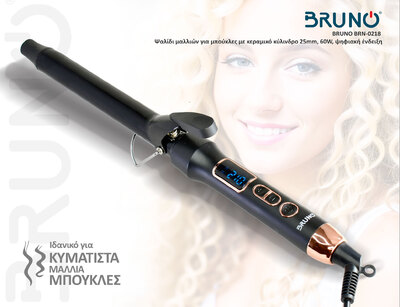 BRUNO BRN-0218 Ψαλίδι μαλλιών για μπούκλες με κεραμικό κύλινδρο 25mm, 60W, ψηφιακή ένδειξη, black-copper