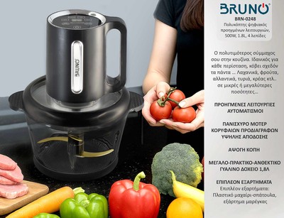 BRUNO Πολυκόπτης προηγμένων λειτουργιών, ψηφιακός BRN-0248, 500W, 1.8L, 4 λεπίδες, μαύρος