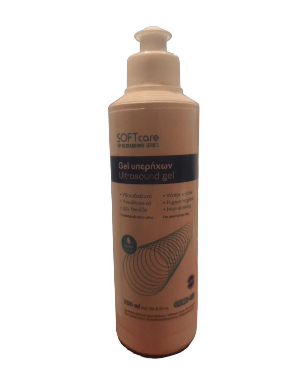 Για εξωτερική χρήση μόνο με όλες τις συσκευές υπερήχων που διατίθενται στο εμπόριο. Εξασφαλίζει καθαρότερη και αδιάκοπη εικόνα στην οθόνη των υπερήχων, εμποδίζοντας τη ροή αέρα ανάμεσα στο δέρμα και την κεφαλή της συσκευής. Είναι απόλυτα υδατοδιαλυτό και άχρωμο,  δεν λερώνει ρούχα ούτε καταστρέφει ηλεκτρικές συσκευές.