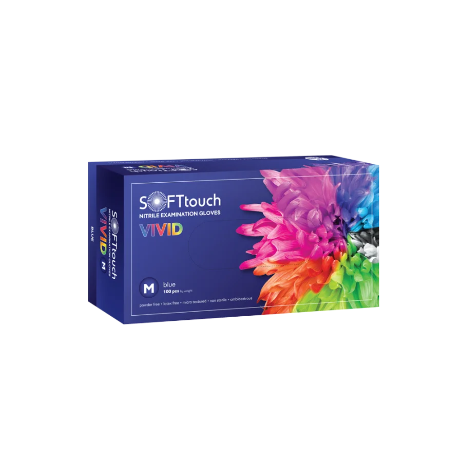 Εξεταστικά γάντια Soft Touch Vivid Γάντια Νιτριλίου χωρίς πούδρα, κατασκευασμένα από 100% νιτρίλιο (χωρίς latex). Ευπροσάρμοστα και είναι δοκιμασμένα με βάση τις υψηλότερες διεθνείς προδιαγραφές.