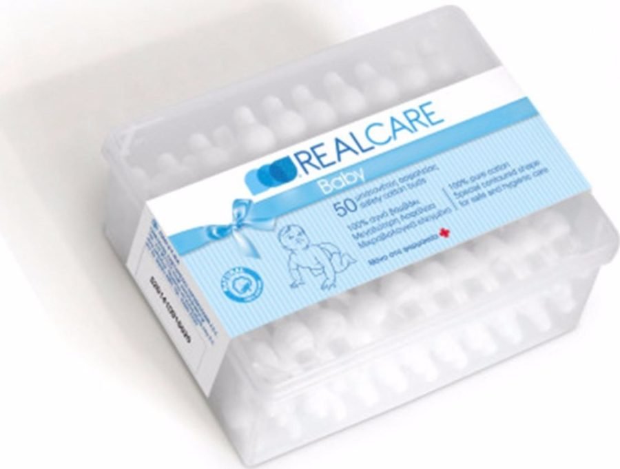 Οι Real Care ωτοκαθαριστές ασφαλείας baby χάρη στο ειδικό τους σχήμα αποτρέπουν την εισχώριση του ωτοκαθαριστή στο αυτί του μωρού με ασφάλεια. Είναι φτιαγμένοι από 100% καθαρό αγνό βαμβάκι βάσει των προδιαγραφών της Ευρωπαϊκής φαρμακοποιίας. Η κεφαλή της μπατονέτας στους ωτοκαθαριστές Real Care αποτελείται από φυσικό λευκό βαμβάκι ενώ