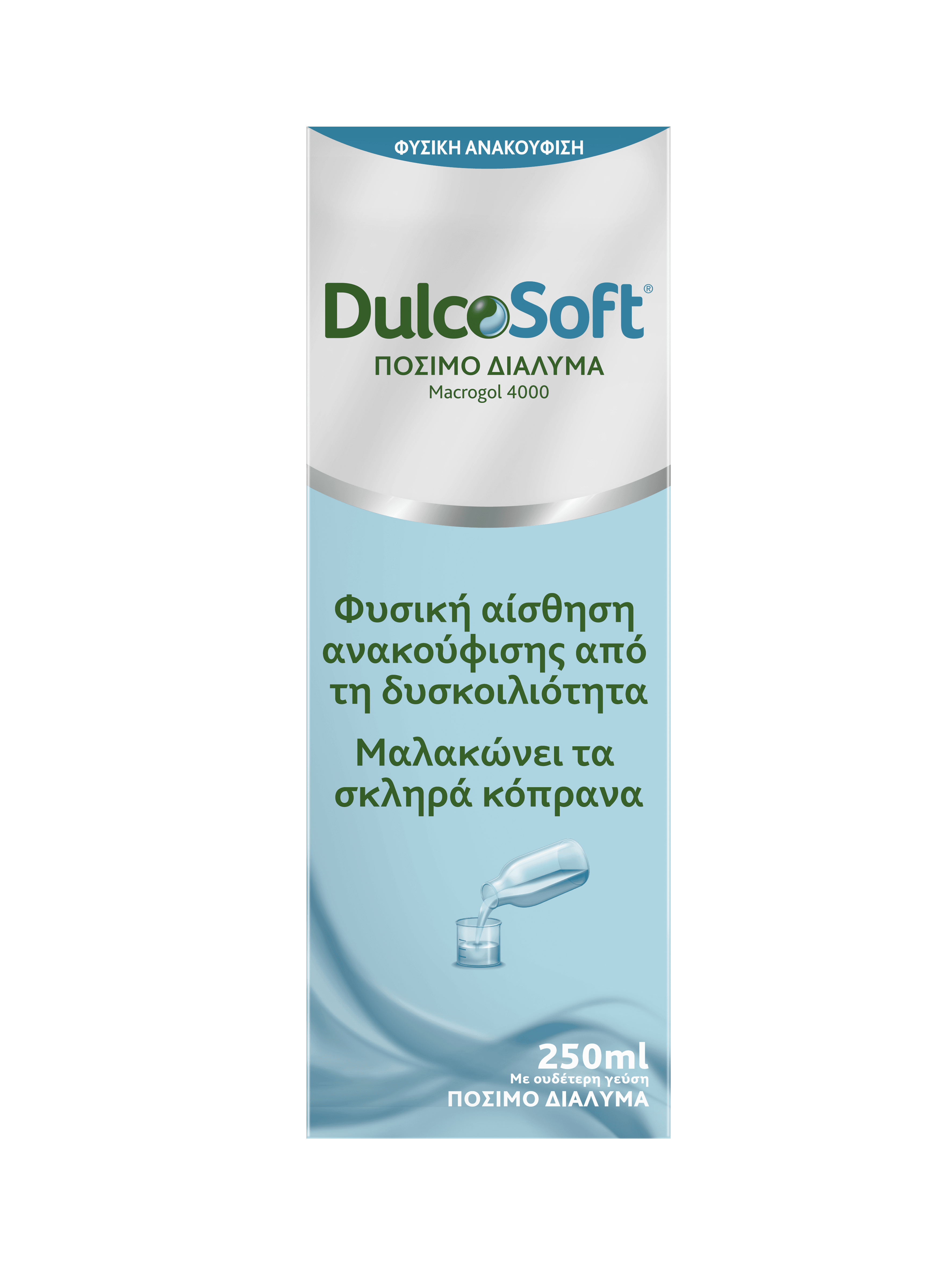 Το Dulcosoft είναι ένα καθαρτικό που χρησιμοποιείται για να αντιμετωπιστεί η δυσκοιλιότητα. Επιτρέπει να μαλακώσουν τα σκληρά κόπρανα και να διευκολύνει τη διάβαση. Λαμβάνεται χρησιμοποιώντας το δοσομετρικό καπάκι προσθέτοντας την απαιτούμενη ποσότητα υγρού σε μισό ή ένα ποτήρι από κάποιο υγρό της επιλογής σας, όπως νερό, χυμό φρούτων ή τσάι.